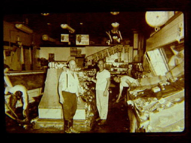 Flood of 1955 showing grocery store on Cumberland Street with interior damage.