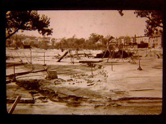 Flood of 1955 showing Social Park in aftermath of the flood.