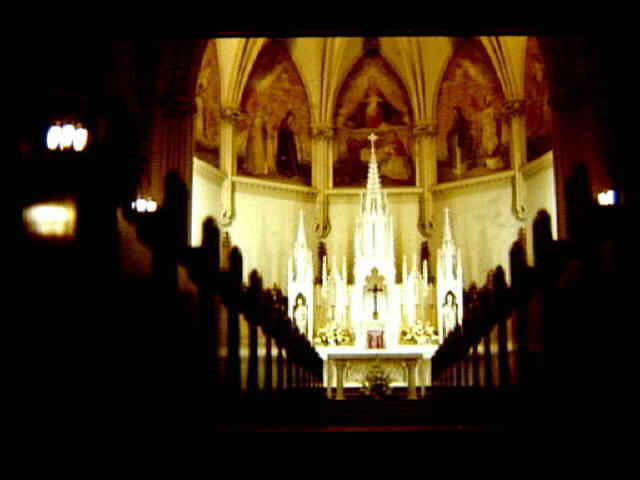 St. Charles Borromeo Church interior, main aisle looking towards the altar.