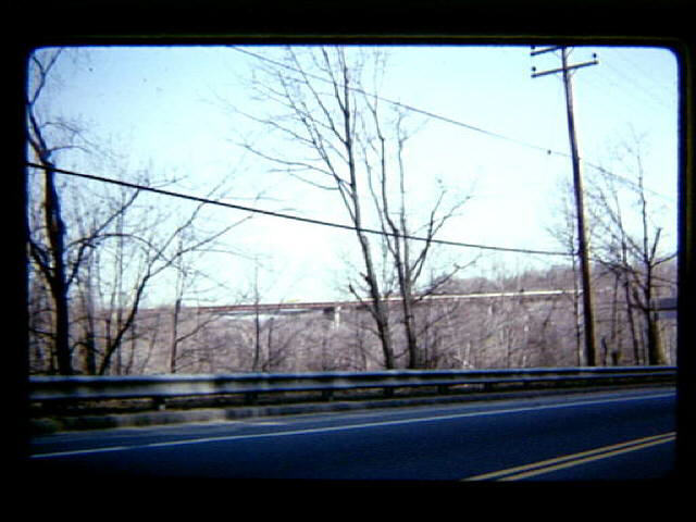 Distant view of connector bridge from Manville Road in Woonsocket.