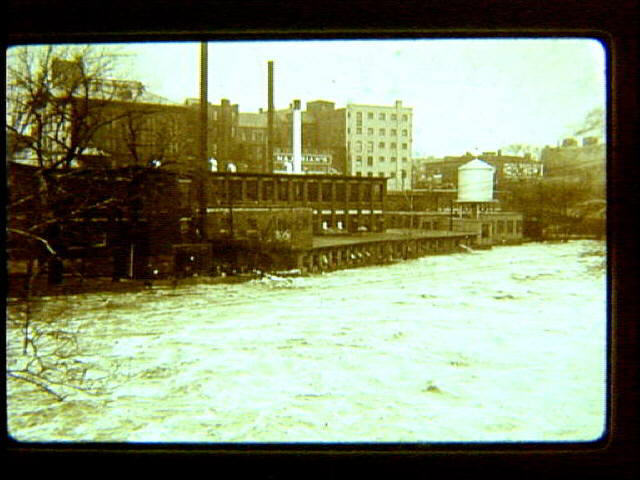 Flood of 1927 showing waters of the Blackstone River looking from Bernon Street bridge towards Allen Street.