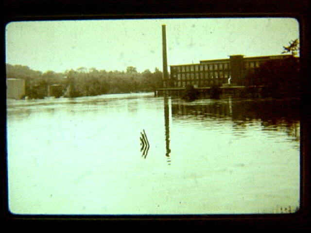 Flood of 1955 showing Cold Spring Park and the Nyanza Mill with floodwaters.