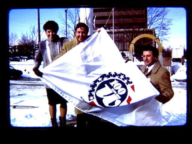 EV 166 1987 December 31 Woonsocket Centennial Celebration in 1988. Dedication ceremonies at the library. Centennial flag.