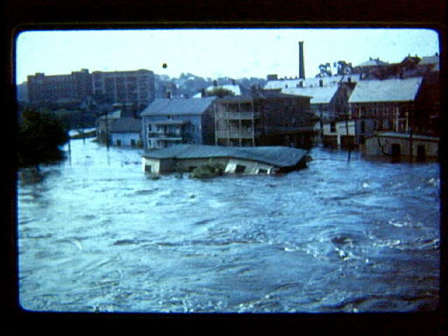View looking down Northeast Street from bandwagon railroad bridge during flood of 1955.