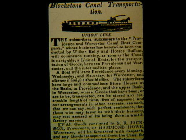 CA 1 c. 1830 Advertisement for Blackstone Canal services