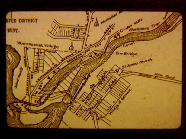 Detail of Woonsocket Falls and Bernon villages from 1838 map.