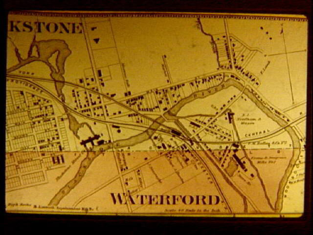 Map showing Waterford sections of Massachusetts and Rhode Island.