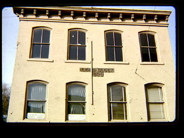 Lee Block on Main Street. Built in 1880. Upper two stories.