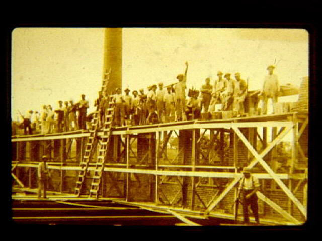 MI 1 c. 1890 The Woonsocket Machine & Press Company at 533 Second Avenue. Construction of brick factory in the 1890s showing workers on scaffolds.