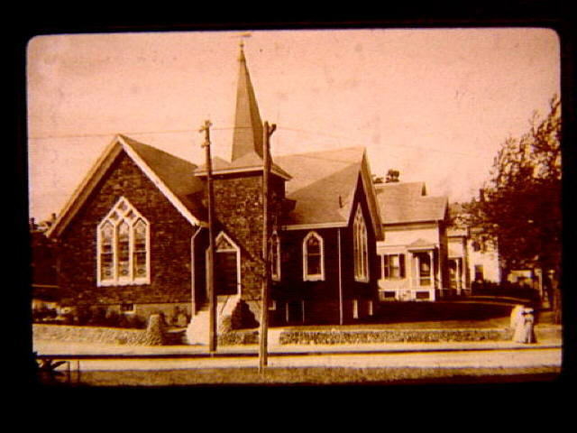 Presbyterian church built in 1904 on corner of Blackstone and Spring Streets. In 1887 Presbyterians organized at