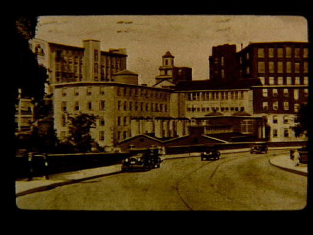 Looking across the Globe Bridge on South Main Street at the complex of mills at Woonsocket Falls c. 1925.