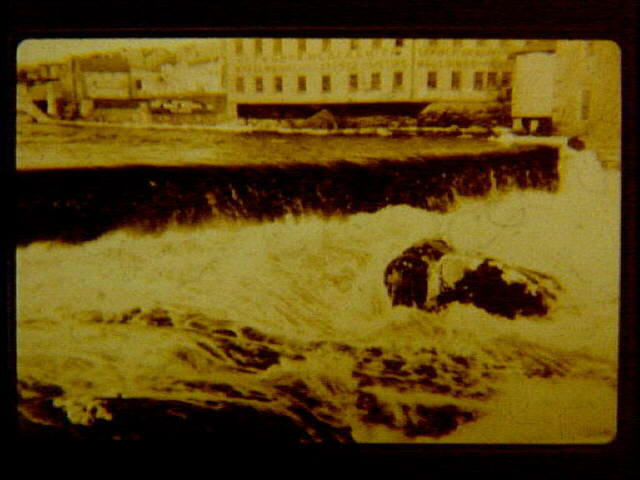 FL 13 1927 Water pouring over old Woonsocket Falls dam taken from Globe Bridge during a flood.