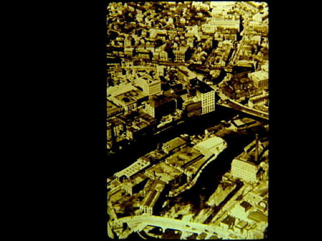 Aerial view of downtown Woonsocket, Clinton Pond area and Blackstone River.