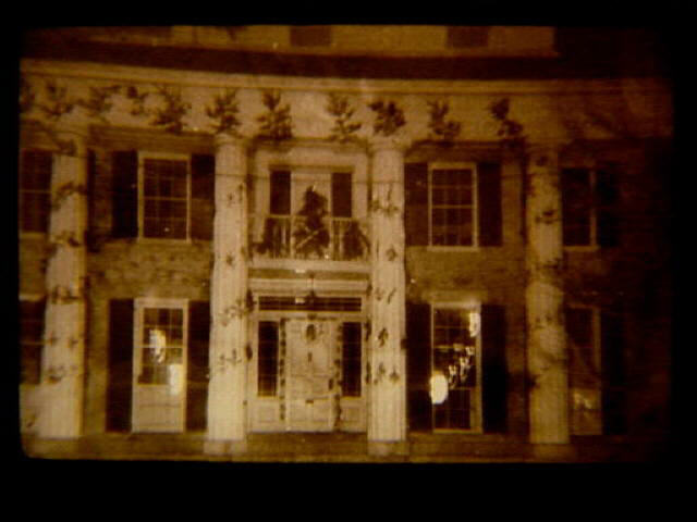 Cephas Holbrook (Old Stone) House at 383 South Main Street. Night photo showing holiday decorations.