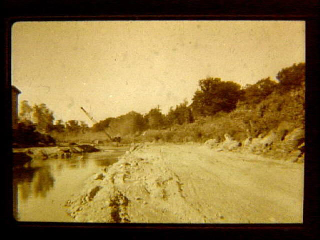 Flood of 1955 aftermath showing Flood Control project widening and deepening of Blackstone River channel above