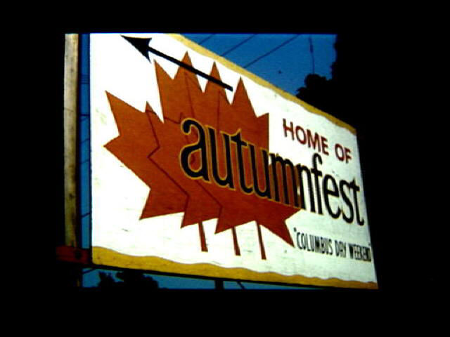 Autumnfest, a three-day festival on Columbus Day weekend. Sign for 1988 Autumnfest.