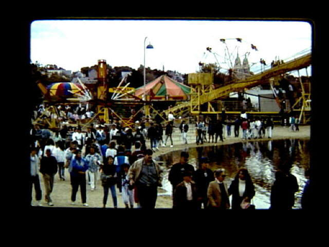 AU 75 1989 Autumnfest, a three-day festival on Columbus Day weekend. Amusement area in park at 1989 festival.