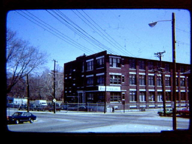 TM 211 1978 April Philmont Worsted Company at Elm and Social Streets. One of the mills owned by the Guerin family. Built in 1919. Theophilus Guerin, a Belgian, was its first president. Specialized in spinning yarn by the Bradford or English system. By the 1970's the building was mainly used as warehouse space.