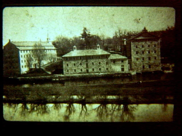 TM 280 1860's Bernon Mills of the Woonsocket Company. View from Harris Block. Blackstone River and canal in the foreground.