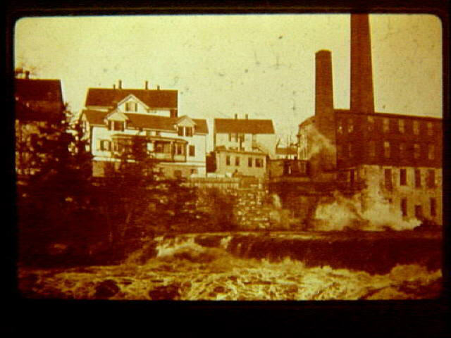 TM 282 c. 1930 Glenark Mill at Woonsocket Falls showing dam and high water rushing over the dam.