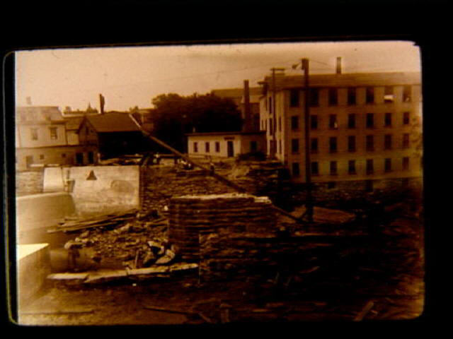 BG 36 1913 Construction of Bernon Street Bridge taken from Front Street. Narragansett Knitting mill is on the right.