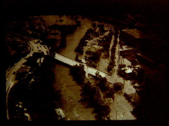 FL 43 1955 August Flood of 1955 showing aerial view of Hamlet Avenue bridge and adjacent area.