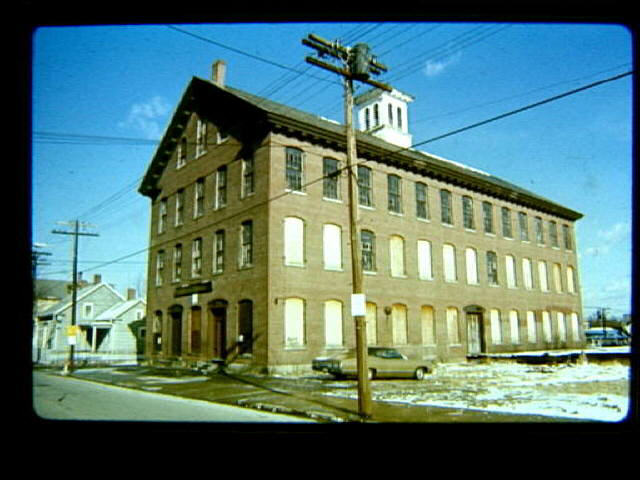 BU 495 c. 1975 North Main Street Harris warehouse. "The Privilege Store." Brick 3-1/2 story building erected by Edward Harris. Bracketed cornices, square cupola, cast iron lintels at the entrances. Contained the largest business rooms in the city. Was little patronized and served long as a warehouse.