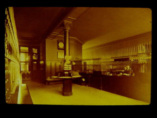 BU 545 c. 1900 Interior of Woonsocket Institution for Savings on Main Street in the Harris Institute Building.