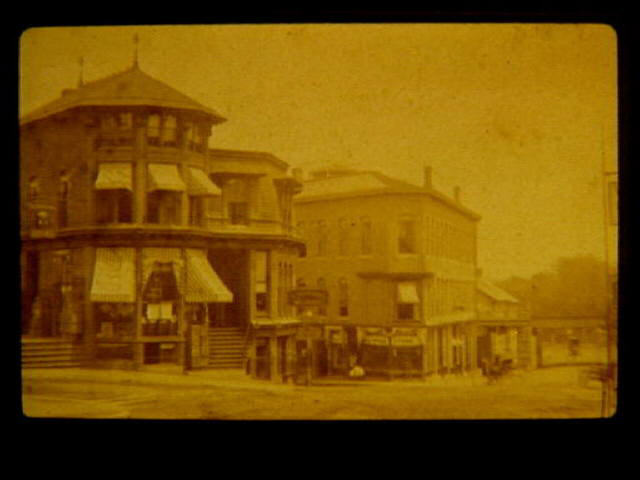 BU 546 c. 1890 Edwards Block at Depot Square. Site of inauguration of new city's first Mayor and City Council in January 1889.