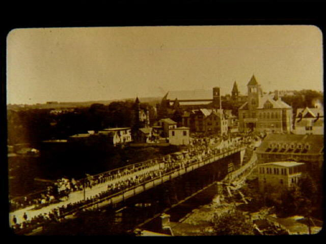 BG 66 1899 Court Street Bridge with an 1890's Labor Day Parade crossing it.