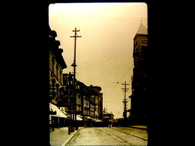 MS 66 1896 (c) View of Main Street looking towards Depot Square showing the Granite block with Longley and Hope buildings in distance. Horses, wagons, pedestrians, etc.