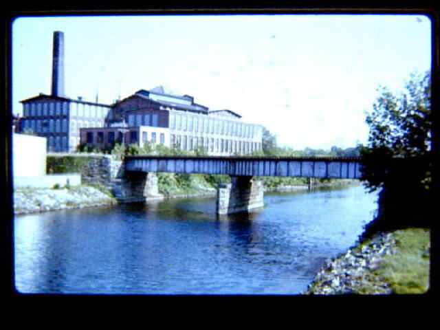 Alice Mill complex from the River Street bridge with Providence & Worcester railroad bridge in the foreground.