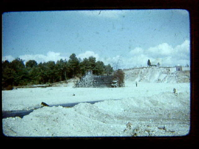 FL 33 1955 August Flood of 1955 showing washed out Horseshoe Falls area. Dam still standing, embankments on either side have washed away.