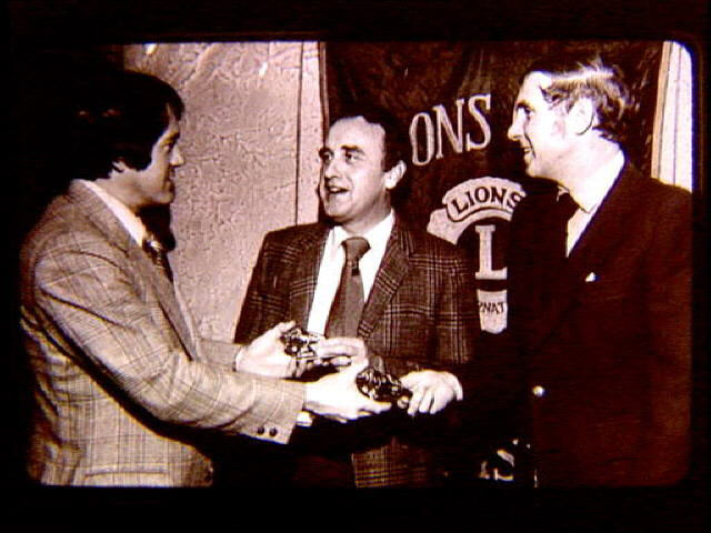 CL 47 1970's Raymond Bacon and Martin Crowley, local historians, at a Lions Club meeting in the mid 1970's receiving a plaque commemorating the work they were doing in local history.