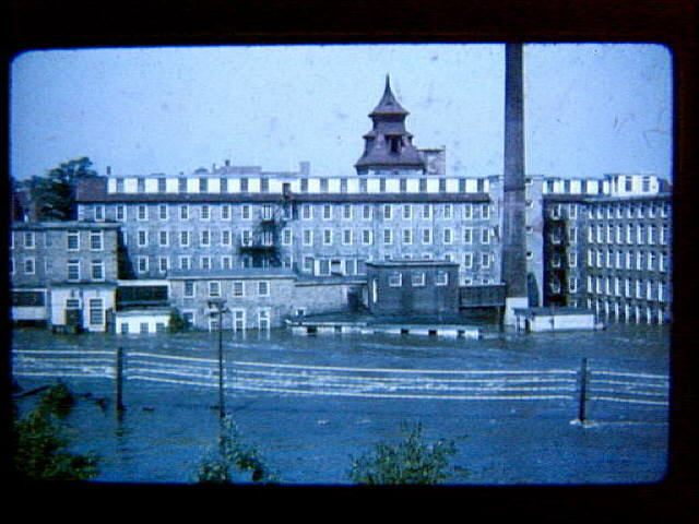 FL 30 1955 August Flood of 1955 showing river side of the Clinton Mill with waters flooding basement and first floor.
