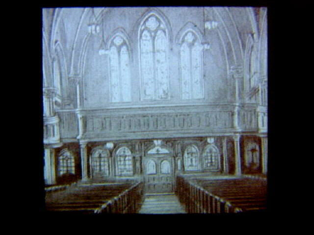 Interior of St. Charles Borromeo Church at Daniels and North Main Streets. View looking down from main altar.