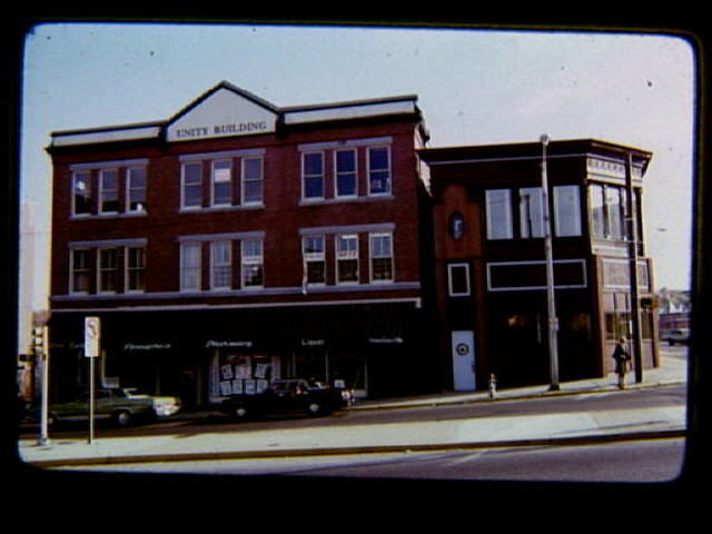 Unity Building at 231-233 Main Street. Built circa 1886. Beaupre's Pharmacy on bottom floor.