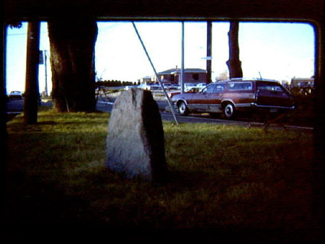 TR 5 1980 November Caleb Aldrich milestone, 1774, located on Route 146-A close to the Roast House restaurant. "12 miles from Providence, 1774, Caleb Aldrich, June."