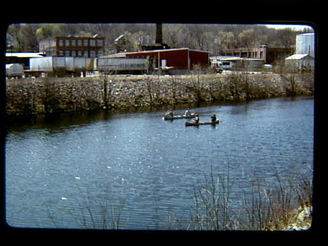 Blackstone River with canoeists looking across from lower Cold Spring Park.
