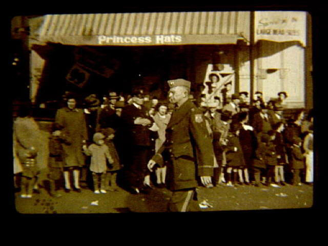 EV 102 1942 November 11 World War II parade on Main Street. Captain James Mulcahy in line of march near Flynn (Depot) Square.