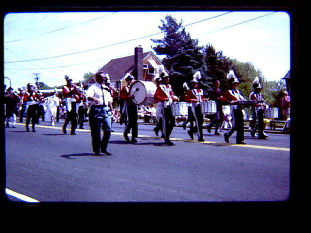 EV 239 1988 Woonsocket Centennial Celebration in 1988. Parade in June 1988. Woonsocket High School band led by James Castaldi.