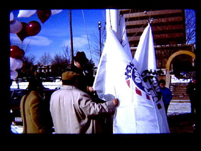 EV 160 1987 December 31 Woonsocket Centennial Celebration in 1988. Dedication ceremonies at the library. Flag raising ceremony.