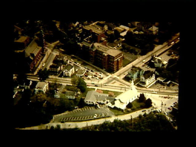Aerial view of Hamlet and Carrington Avenues showing St. James Episcopal Church, Precious Blood Church and
