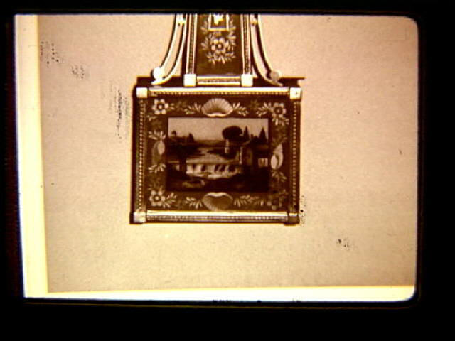 WF 6 1970's Woonsocket Falls as depicted on a "banjo" clock made about 1830 in Woonsocket, now in Ohio.