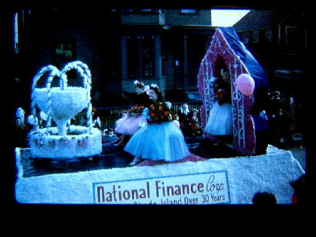 EV 47 1955 Mardi Gras parade showing National Finance Corporation float.