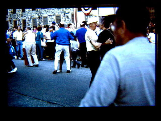 EV 224 1988 Woonsocket Centennial Celebration in 1988. Main Street Block Party during the centennial year. Senior citizens dancing to the music near the Hanora Lippitt Manor.