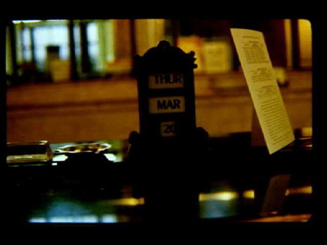 BU 544 1980 March 20 Interior of Rhode Island Hospital Trust bank. Calendar showing date of official closing of the bank.