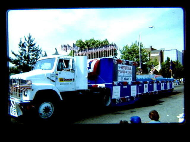 EV 261 1988 Woonsocket Centennial Celebration in 1988. Parade in June 1988. Float depicting 1955 flood in Woonsocket.