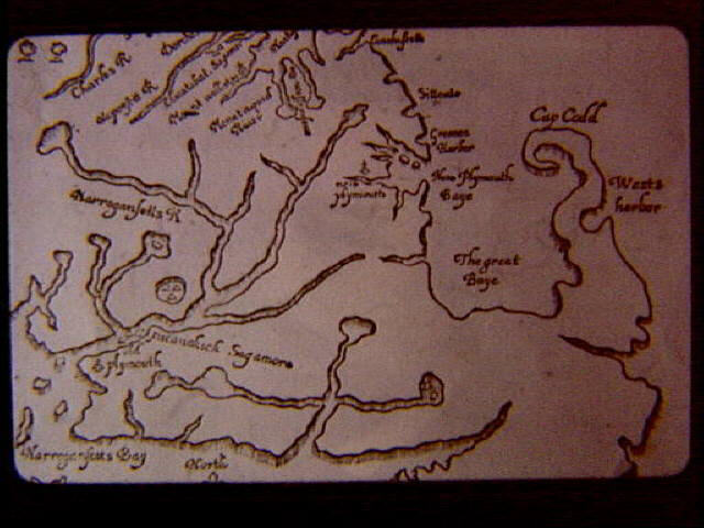 MP 23 c. 1633 Map showing Southeastern Massachusetts and Rhode Island. Blackstone River is called Narragansett River. Earliest map of the water areas of this part of the region.