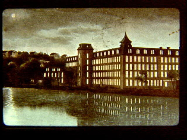 TM 37 c. 1915 Globe Mill off Front Street near Woonsocket Falls. River view at evening.